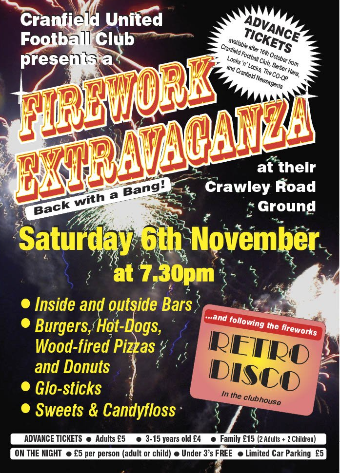 Available to buy at Cranfield United Football Club, Barber Hans, The Co-Op and Cranfield Newsagents. Adults £5, Child £4 (3-15yr), Family £15 (2 Ad, 2 Ch), Under 3s Free.